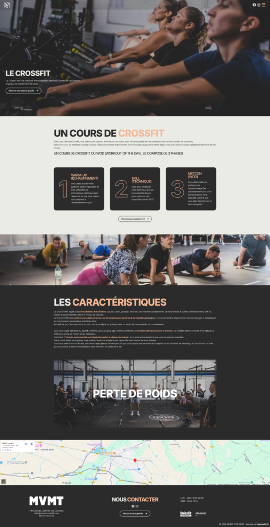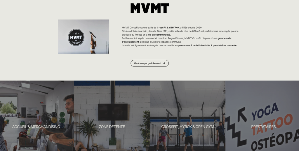 Le site devait permettre aux visiteurs de découvrir rapidement l’identité de MVMT, ses équipements et son ambiance.